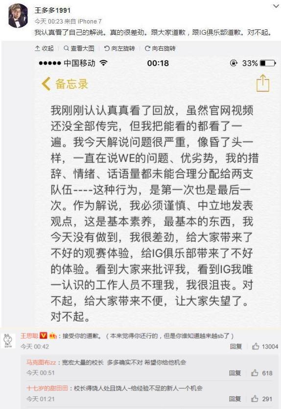 三叔点评:当然,现在我们还能看到王多多的身影,不是因为王多多的背景有多厉害,而是官方决定重新重用王多多更多的还是看到了他的才华,以及解说风格的新颖。