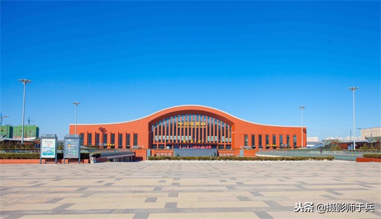 哈尔滨西站,顶部呈拱形,属于欧式建筑风格,站房由4个层级构成。在色彩和材质上,砖红色的外立面色彩选择给人以温暖、安全的感觉,同时红色在冰城哈尔滨的素白世界中将显得格外突出和亲切。