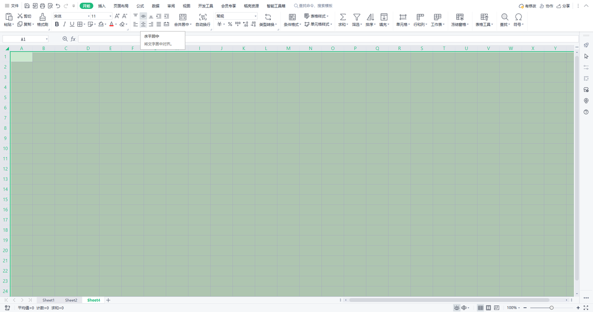 1、首先打开一个空白的excel表格,点击表格左上方倒三角符号全选表格,再将所有单元格设置成水平居中;