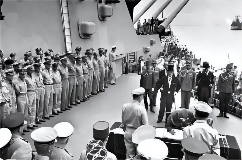 1945年9月2日美国密苏里号军舰上的日本投降仪式