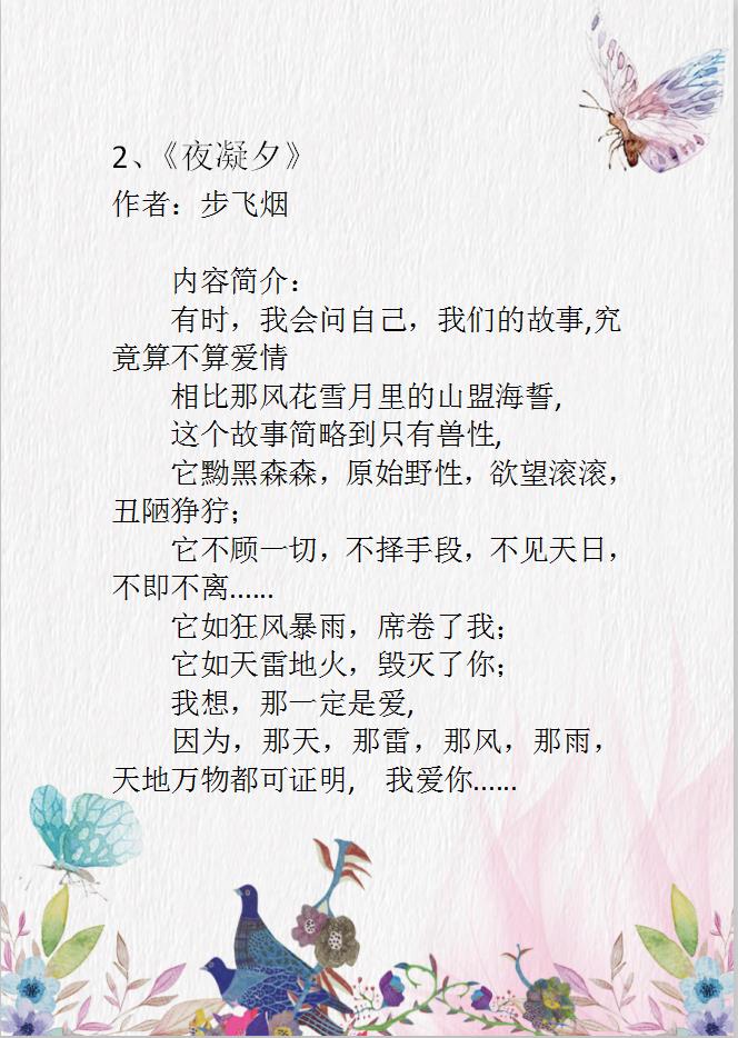 《夜凝夕》——这部爱情童话,笔法尖深,背景设置宏大,题材跨越言情、童话、悬疑、虐恋、惊悚等,堪称新生代罗曼史中的经典力作。是一部爱情悲剧,两个超级情痴,在黑暗王国征伐拼杀,疆域、财富、一切的组织、设备都投入到对一个冷艳卓绝、背负"原罪"的女人的追求、征服和欲求中。两性间的伤害、折磨、欢爱、奉献、救赎在紧凑得让人窒息的情节中铺陈、发展,最后,只有死亡可以和爱的尊严、超然和绝望平等对话。一部丰满厚重的童话,作者把想得到,想不到的伦常、情境,实有虚构的疆界,神秘、暴烈的黑社会组织作为设定和道具,把圣洁的爱情摆上血腥残酷的祭坛,在主人公纠结、凌厉的爱恨情仇中把爱的疼痛和绝望写到极致。一场关于人性与救赎的拷问,即使在黑暗无边的生存法则面前,残忍的女杀手依然从容地扮演着母亲、姐妹、生死友爱、柔弱情人、复仇女神、坚强的救赎者等光彩永恒的女性形象。