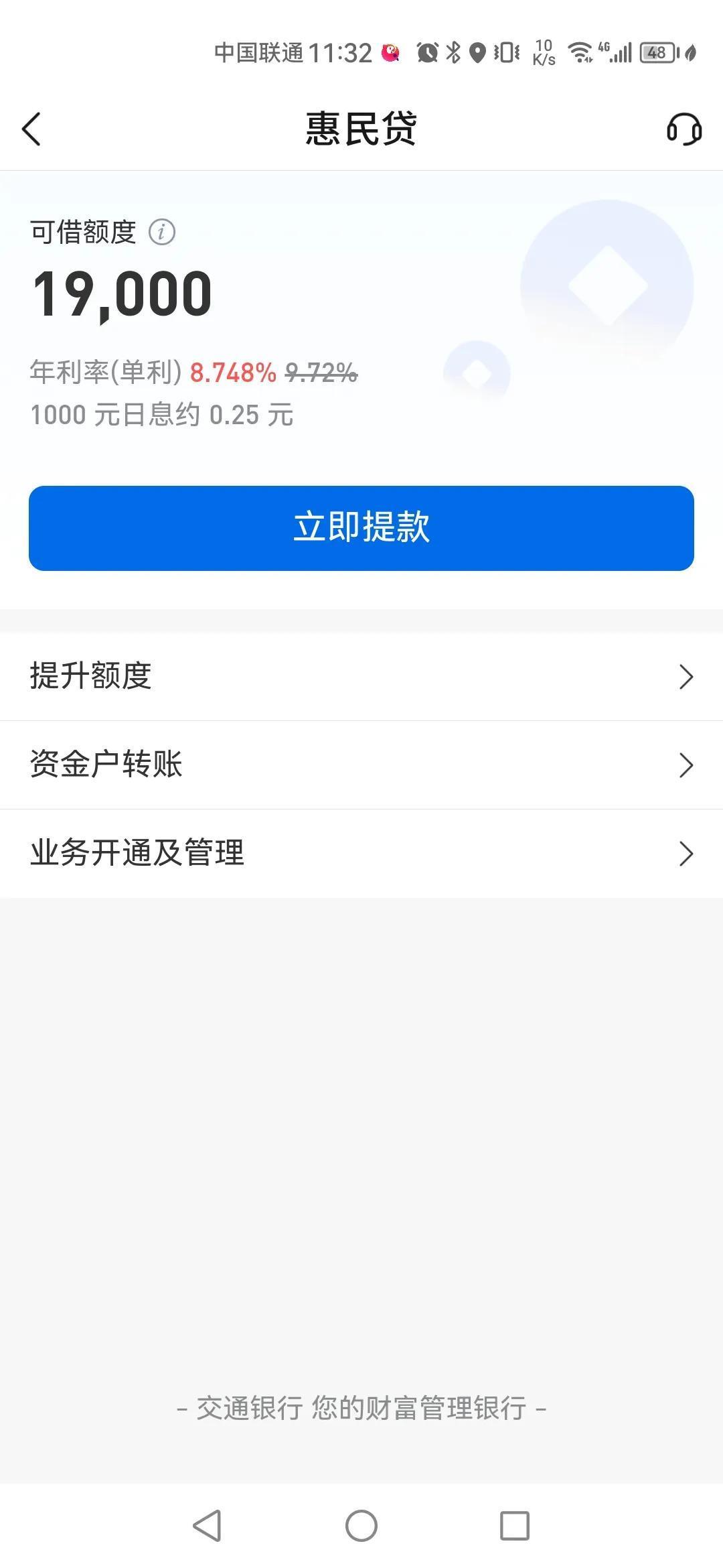 开始还对这个没啥概念,后面同事说他在银行借也才12%,我看了一下我的手机银行
