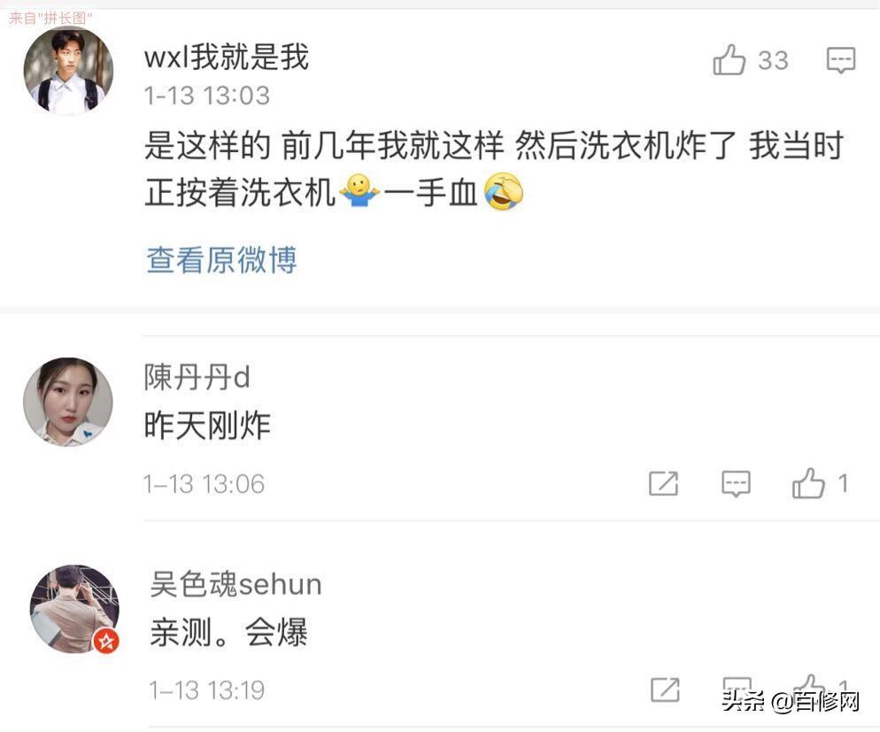 如果没有这个实验,很多人真的会把“洗衣机洗羽绒服会爆炸”当成是谣言。其实有网友亲身经历过这种事情,他说前几年就是这么用洗衣机羽绒服的,当时手正按着洗衣机,然后洗衣机一直震动,紧接着就是猝不及防的爆炸了,炸的一手都是血。除了这位网友之外,也有网友说真的会爆炸。