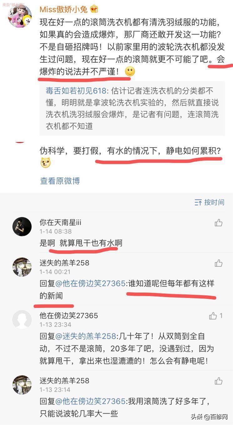 但是,即便有网友亲自验证会爆炸的说法,仍然有网友抱有质疑的态度。对此,小编就只想说一句:当有些事情没有降临在自己身上的时候,不管别人说什么都无法相信。有些人用了十几年没出现问题,并不代表所有人都不会出现问题。洗衣机之所以会发生爆炸与洗衣机的品牌、羽绒服的质量和使用方式都有关系。既然实验证明了确实会爆炸,就说明具有一定的危险性。