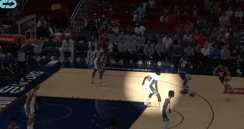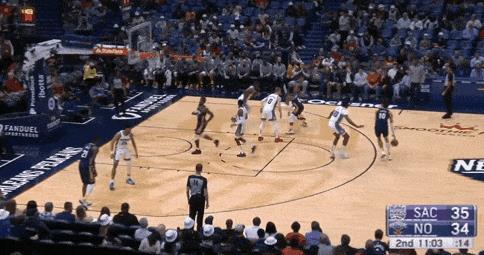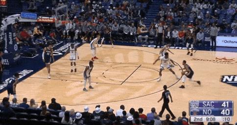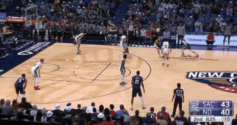 而除了精彩的防守脚步,我还希望你注意达米安-琼斯在这两次防守中是如何出色地保持了和CJ-麦科勒姆间的距离——许多中锋在不得不面对后卫时,经常会选择退的更后一点以免被过掉,而这经常导致对手投篮命中。