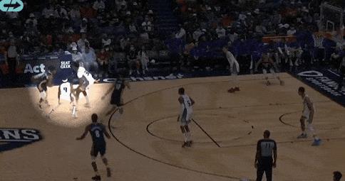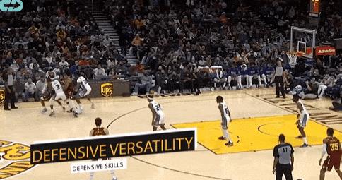 再附上一张达米安琼斯提前夹击持球人成功的GIF,他在防挡拆上真的很有侵略性,这会在下赛季带给湖人很多帮助: