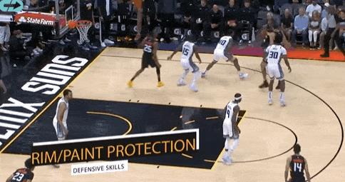这一球,达米安琼斯就做到了兼顾两头——他先是帮助队友协防伍德,然后在伍德传球的瞬间转身,封盖了下顺攻框的火箭球员。