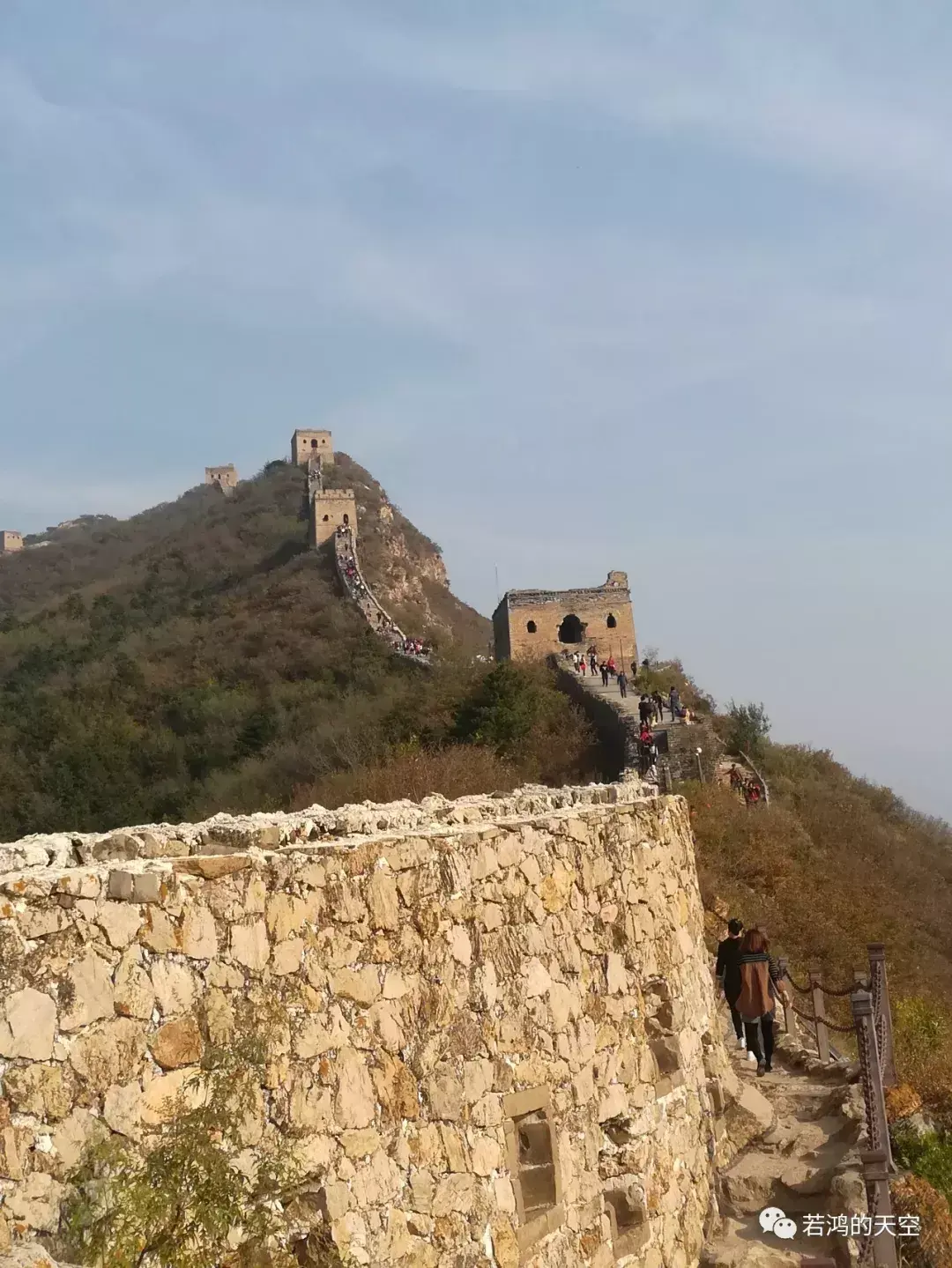 2018年10月,游览古北水镇,登司马台长城。长城虽被加固,但是保留了原貌。一路攀登在滑腻陡峭的石阶上,感触颇多。