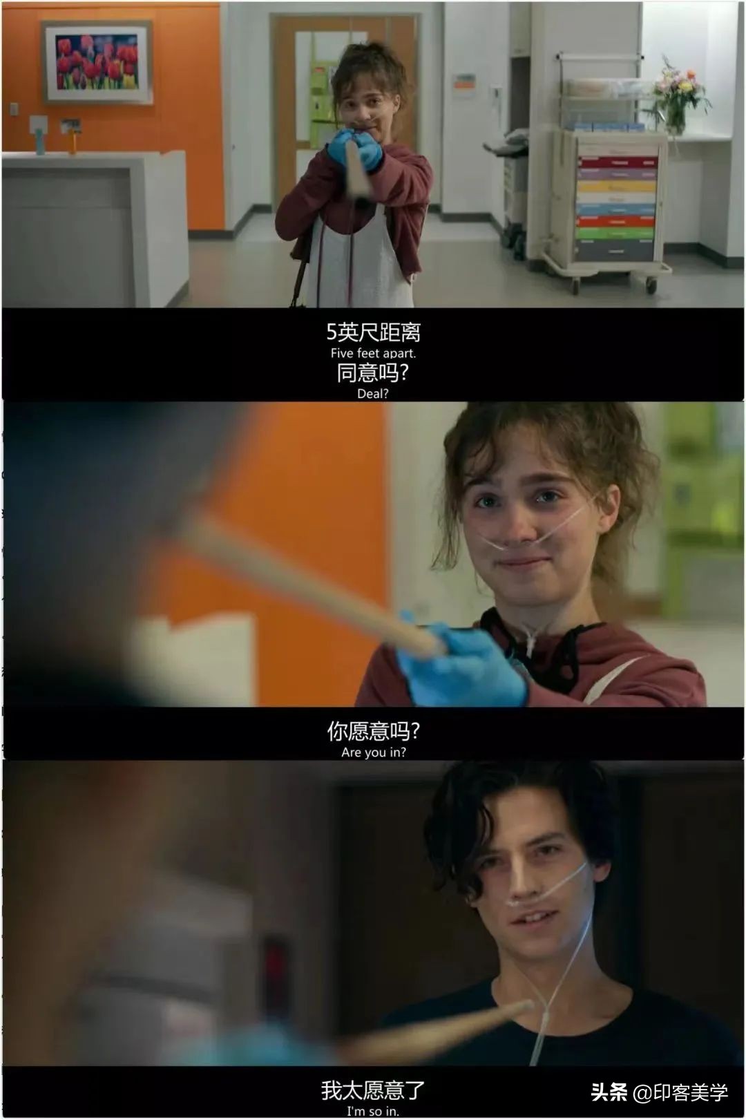 她不顾一切拉着威尔的手打破五尺距离,他们在冰面上自由牵手,滑行。