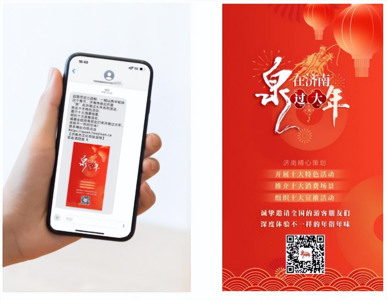 为了方便市民游客参与“泉”在济南过大年各项活动,查询济南“吃住行游购娱”相关信息,济南市文化和旅游局精心设计制作了“‘泉’在济南过大年掌上攻略”,并通过手机短信等方式向来济过年的外地游客推送。
