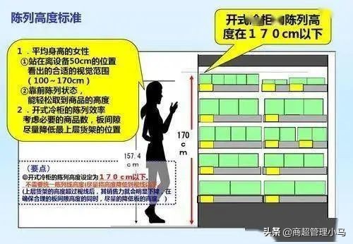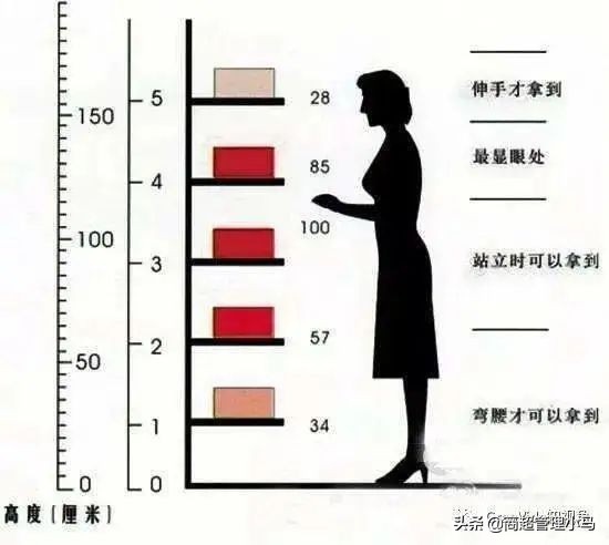 (4)陈列的高度,通常使所陈列的商品与上段货架隔板保持可放进一个手指的距离