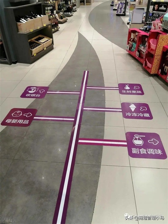 1.入口处的商品分布图醒目张贴,让顾客一进超市就对陈列方位一目了然。
