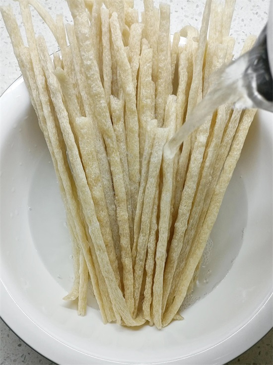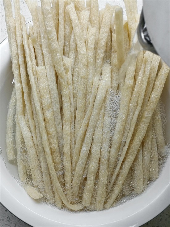 2.倒入刚烧开的开水,浸泡10秒钟,马上捞出,不要浸泡时间超过10秒钟