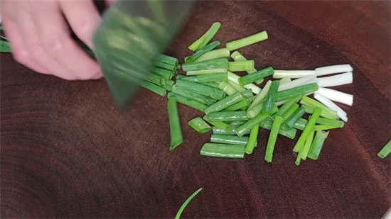 3.准备配料,青红小米椒切圈;大蒜和姜切片;小葱切段。