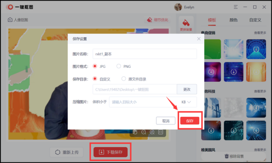 ⑤ 最后,大家如果对照片抠出来的结果都调整好了,就可以点击页面下方的【下载保存】,选择图片的保存格式和保存位置,点击【保存】,图片就会被保存下来啦。
