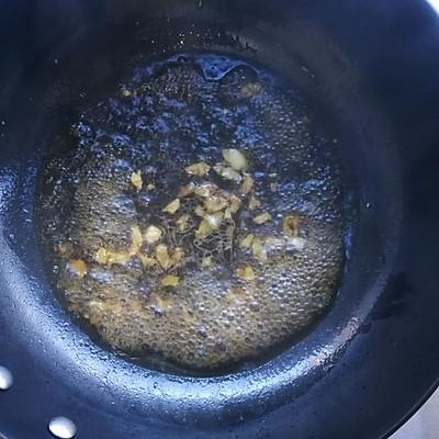 2、热油放大蒜粒,倒入调好的汁水:3勺生抽,一勺耗油,少量的盐和黑胡椒粉,半碗清水搅匀。能吃辣的可以切点小米辣或干辣椒
