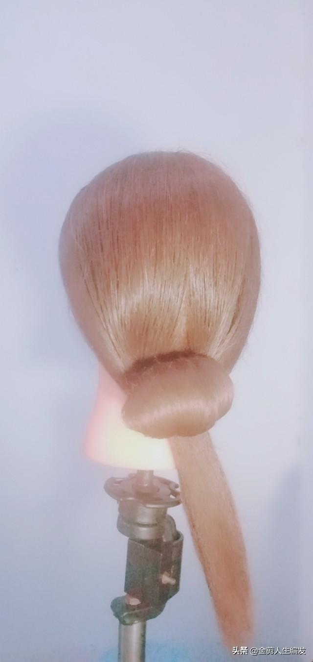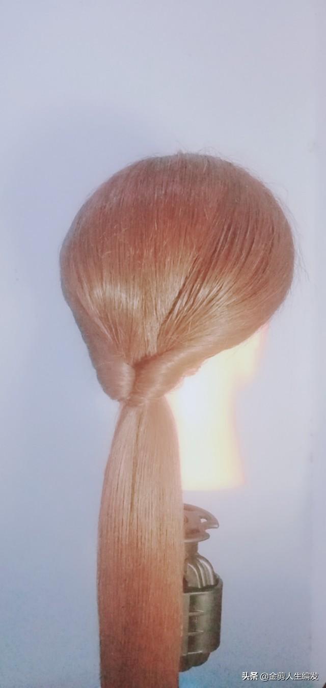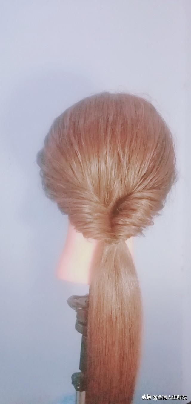 头发少这样扎好看,一,先扎低马尾,二,把马尾向内翻转拉出来,三,抽丝发型动感线条及纹理,