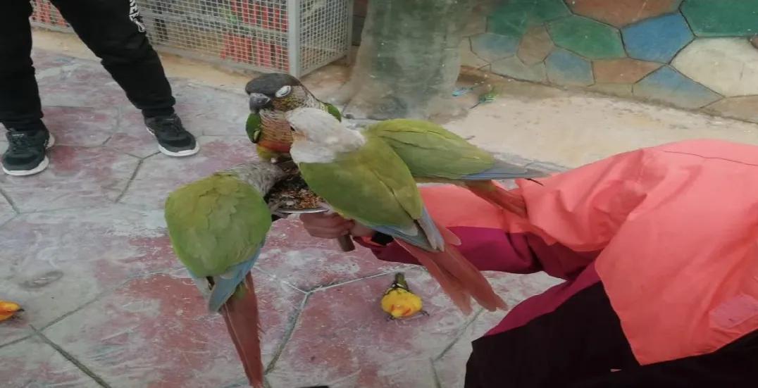 随后我们参观了小孩子最喜欢的观鸟园,掀开长长沉沉的细铁链,就看到五彩的金刚鹦鹉、可爱的虎皮鹦鹉、诙谐的灰鹦鹉、小葵花凤头鹦鹉、和尚鹦鹉、鸡尾鹦鹉、太平洋鹦鹉等众多品种的鹦鹉。它们在一间很宽大的房间飞舞,时不时地落在你的肩膀,手臂。此时一位工作人员邀请照相,随后给我们小把鸟食,顿时各种鹦鹉飞过来想当我们的“头饰”,抓拍了几张特别有意思的照片,因为时间关系,依依不舍的出发到下一处。