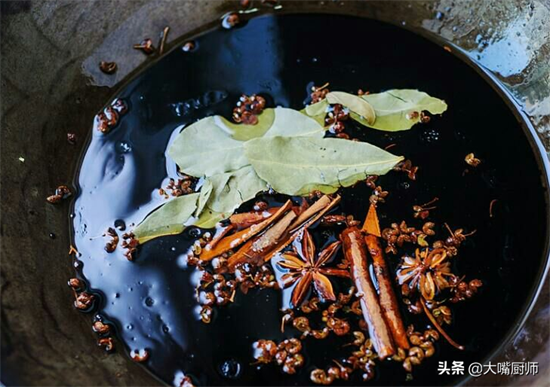 4、准备一瓶生抽、一瓶老抽,一碗冰糖,再准备花椒、八角、桂皮、香叶各5克,还有一块姜、一根葱。