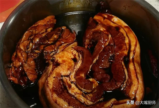 7、经过3天的浸泡,猪肉充分吸收了酱汁的味道和颜色,变成了红褐色,有浓郁的酱香味。