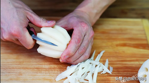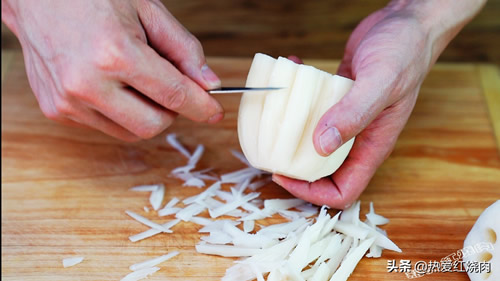 小提示:如果没有戳刀就用小刀慢慢修也可以的,就是慢些,修下来的边角料不会浪费的,可以炸藕丸子用掉也可以做饺子馅儿用掉,不用丢掉哈!
