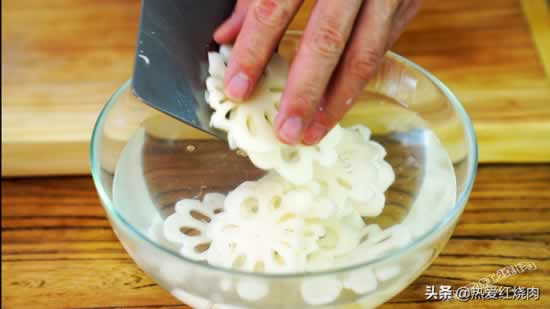 8将切好的藕片用冷水浸泡着以免氧化变色。