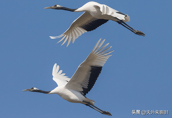 丹顶鹤的骨骼外坚内空,强度是人类骨骼的7倍,而且它在迁徙的时候,常常排成巧妙的楔形,使后面的个体能够依次利用前面个体扇翅时所产生的气流,从而进行快速、省力、持久的飞行,时速可达40公里左右,飞行高度可以超过5400米以上,而且能够边飞边鸣。