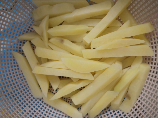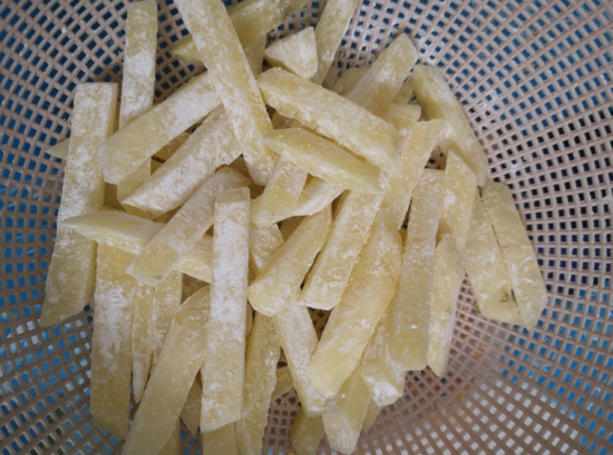问过大伯后才知道,土豆切好后不能直接油炸,还少了关键的2步,下面和大家分享做法。