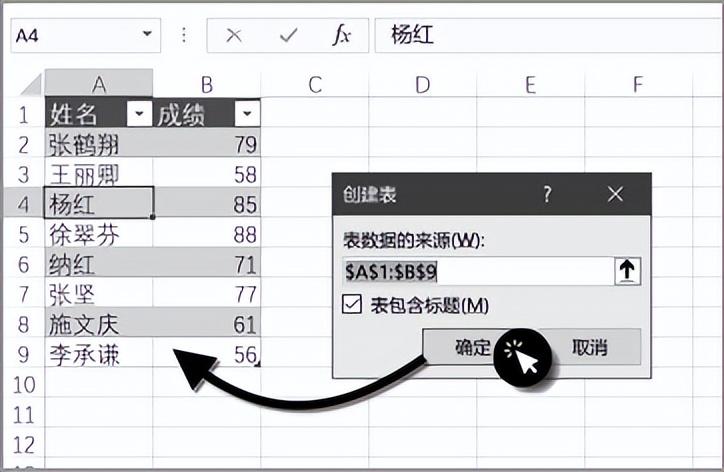 选取对象,也就是待生成“超级表”的单元格区域,如图 1-1 所示的 A1:B9 单元格区域。如果整个数据区域中没有任何空行或空列,可选取其中任意一个非空单元格(如 A4)作为选取的对象。