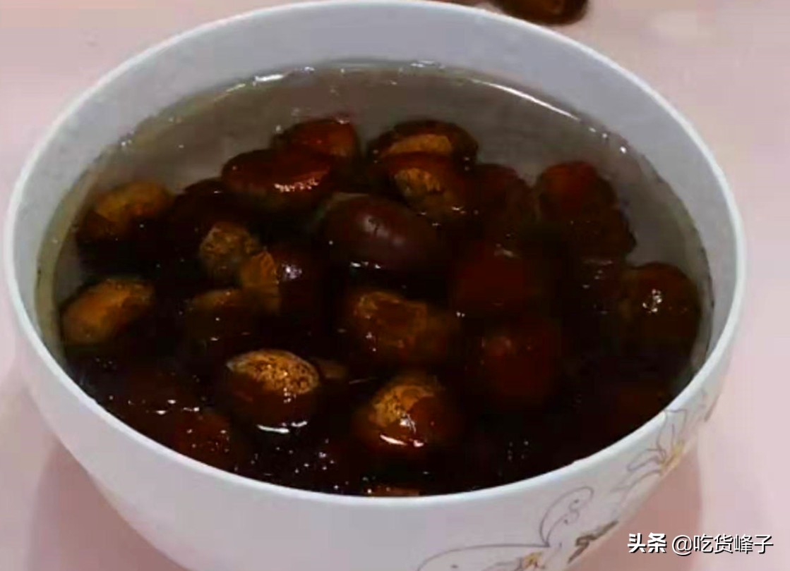 方法很简单,大家可能已经看到了我在炒板栗之前先用开水烫了2个小时,这一步是关键,不但可以使板栗更加入味,还会使板栗的皮变软,去壳时里面的皮也就会很容易脱落了。