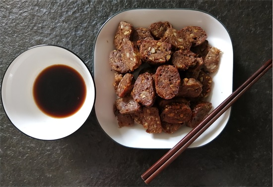 阳城烧肝是山西晋城阳城县的一道地方名吃,它主要是用新鲜的猪肝,搭配上佐料制成,做出来的烧肝看着“其貌不扬”,有点焦黑,但是蘸着老陈醋吃的时候,口感却是别具一格,外焦里嫩,舒爽适口,原汁原味。