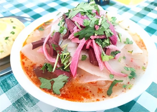 阳城杂格是山西晋城阳城县的一道风味名吃,也是当地人最爱吃的早餐之一,它主要是用粉条、白萝卜,搭配上新鲜的牛肉、鸭血或猪血等食材制成的美食,粉有韧性且丝滑,汤很好喝,萝卜特别糯。