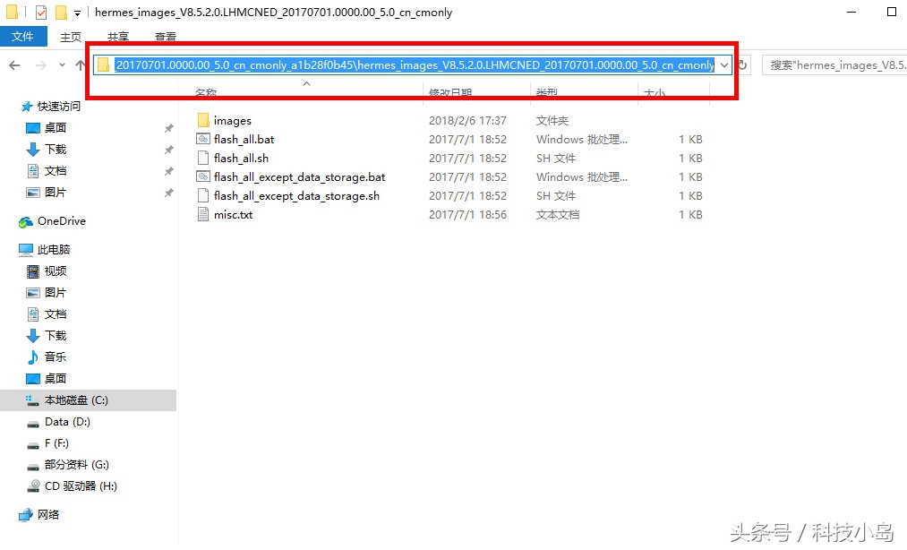 线刷Fastboot包下载完成后解压,打开线刷包文件夹,复制地址栏的地址如下图。