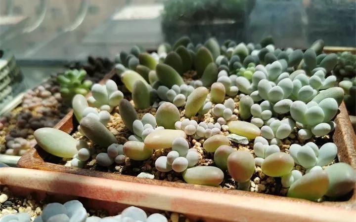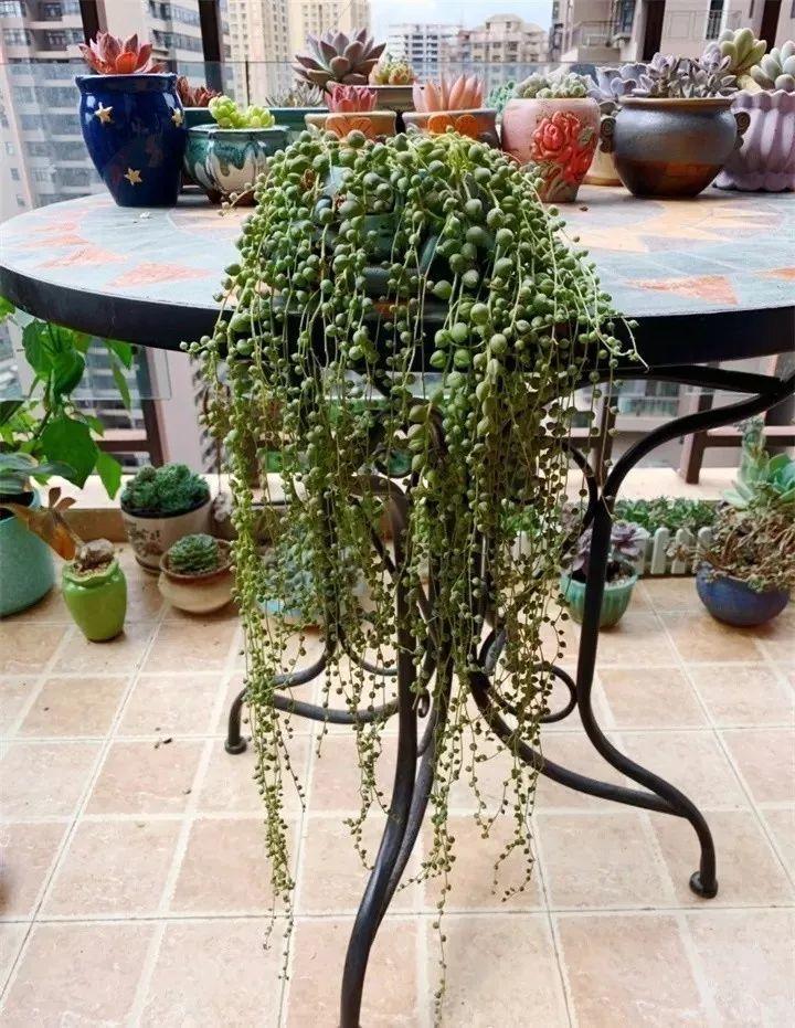 如果你想在阳台上养多肉,那可以挑选有层次有立体感的,比如爱之蔓、佛珠、情人泪、紫玄月等垂吊型的多肉。