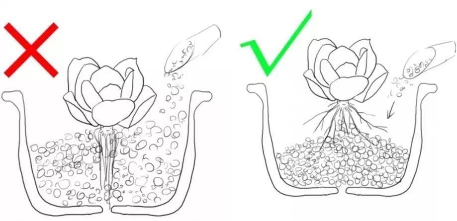 为了保证盆土的排水透气性能,要选择带透气口的花盆,剪一块纱网垫盆底,再铺上一层陶粒或6mm大颗粒的火山石。