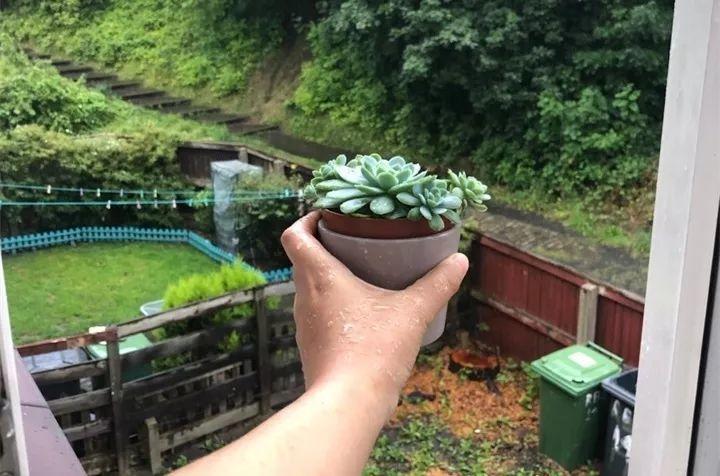 潮土栽种的多肉,上盆后3~7天不宜浇水,放在散光通风处,观察多肉叶子变硬,土壤接近干透再浇,通常1~2周服盆。