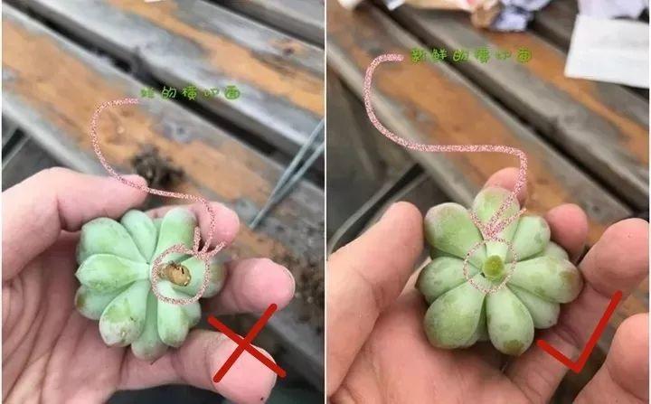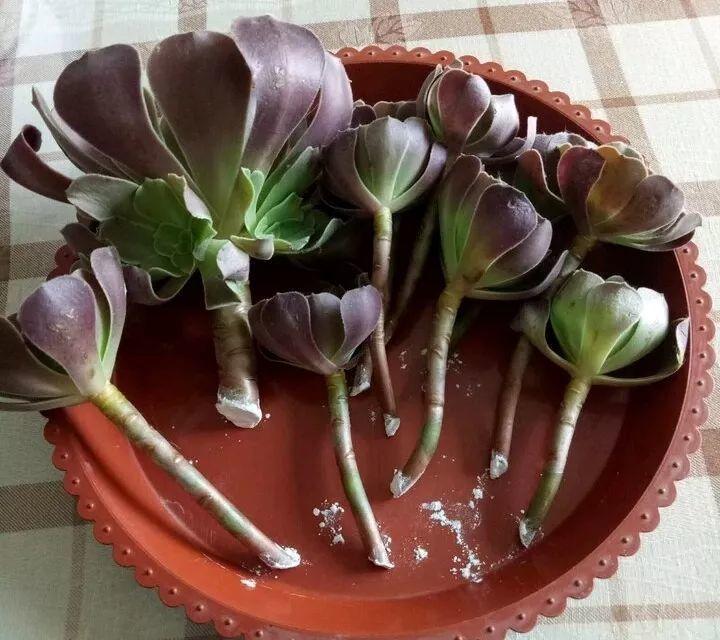 如果多肉黑腐的严重,茎杆基部完全变黑化水,但是多肉的脑袋还完好,赶紧用小刀给多肉砍个头,刀片提前用酒精消毒。