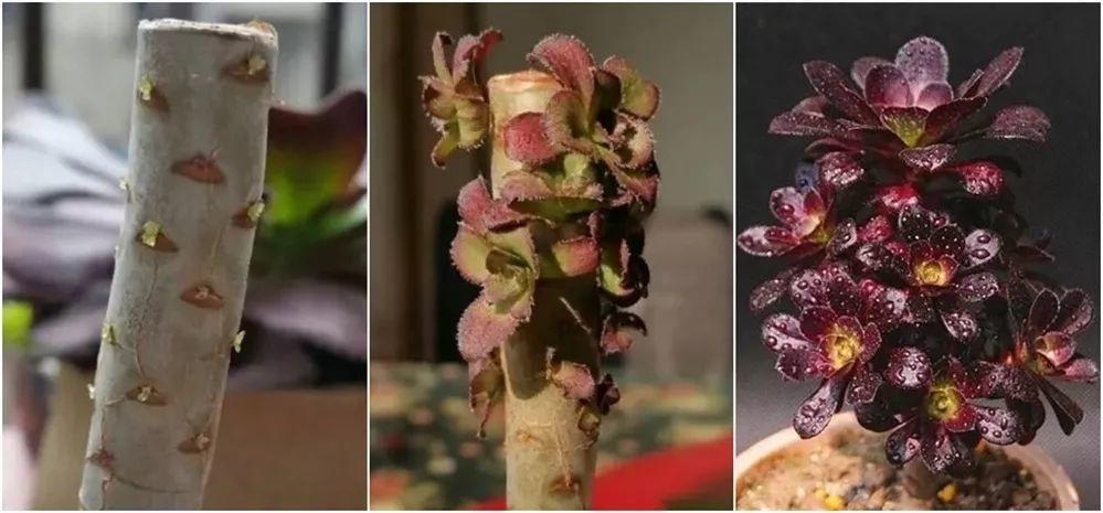 还有一种情况,就是侧芽长在多肉茎杆上,这种的要等侧芽长到4~6片叶子时,将其掰下来进行扦插,一周左右就能生根。