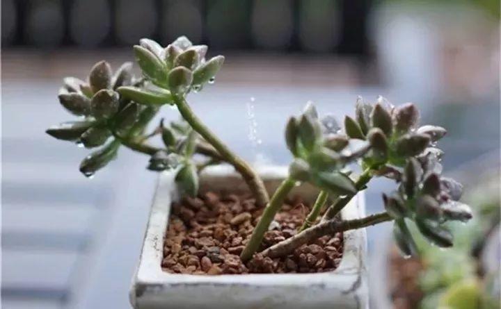 夏季休眠的多肉适当控水,掂量盆土很轻的时候,选在早晚沿盆边溜一圈水;冬季温度低于10℃,选在中午,等土壤干透后溜点水,5℃以下,直接断水。