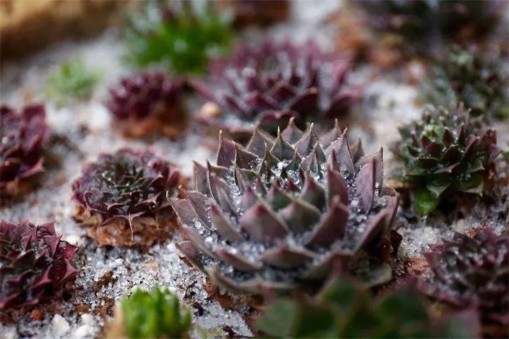 像莲花掌、长生草类的多肉都比较皮实,室外露养不怕严寒,比如黄丽、冬美人、胧月、观音莲等,越冻越好看。