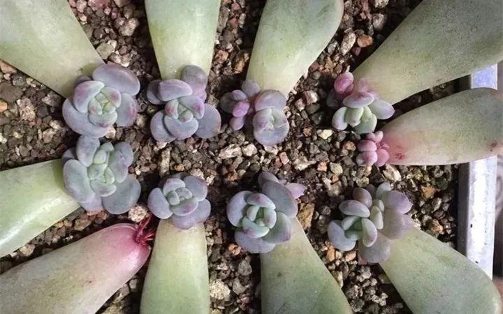 多肉很容易在植株底部长侧芽,仔细观察一下,如果侧芽是从土里钻出来的,等小芽长大后,可以给多肉分个株。