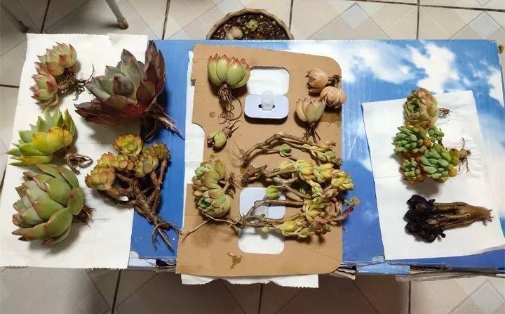 把根系上的土轻轻抖掉,检查一下多肉是否携带蚧壳虫,如果有用棉签蘸75%的酒精擦掉,或者用护花神泡一泡多肉。