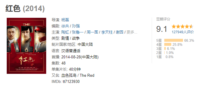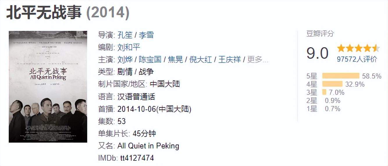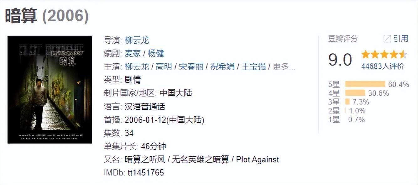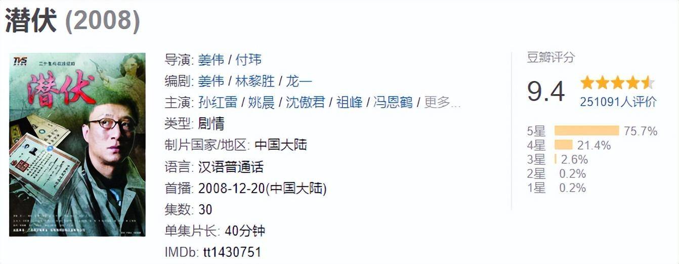 这部剧虽然并不是排名最高的,但仍不影响它在观众心中的地位,被称为“谍战剧”的巅峰。