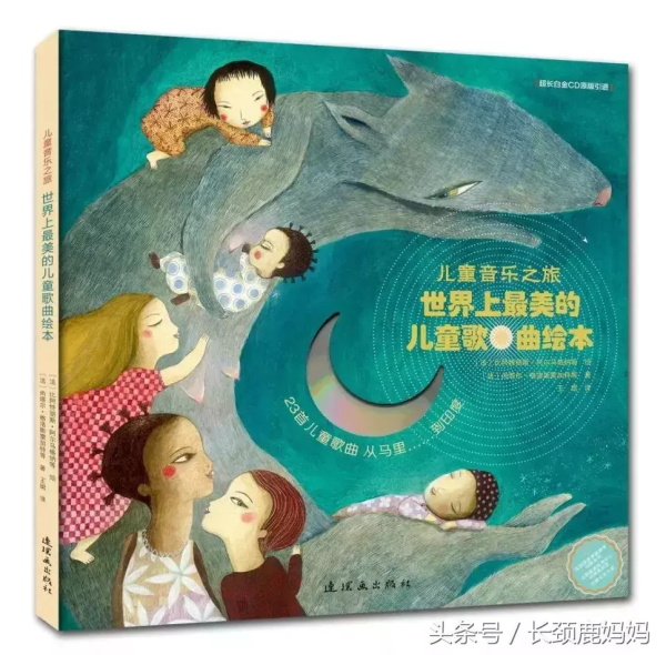 如果,想要让孩子接触更多不同国别的儿歌童谣,不妨可以看看这本书《世界上最美的儿童歌曲绘本》(含CD)