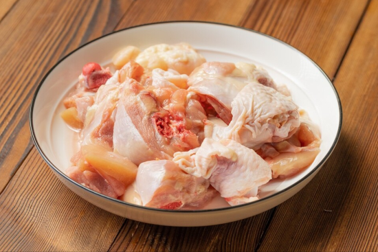 2、拿回家的鸡肉,什么步骤都不用做,直接将其倒在盆子里,往里面添上没过鸡肉的水,开始浸泡就可以了,要想吃起来嫩,至少要泡1个小时。泡好的鸡肉,再来炖的话,都不需要炖多长时间,就非常烂糊了。而且这样泡一下,血水也没有了,腥味减轻了。
