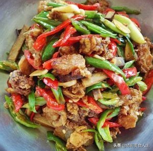 青椒鸡蛋干炒油渣