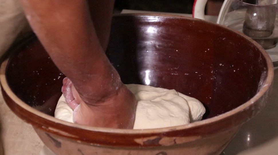 做饼坯:我们将醒发好的面团取出来,在案板上抹一层油,将醒发好的饼坯按压成圆饼,然后再用擀面杖擀成圆饼,尽量的薄一些,