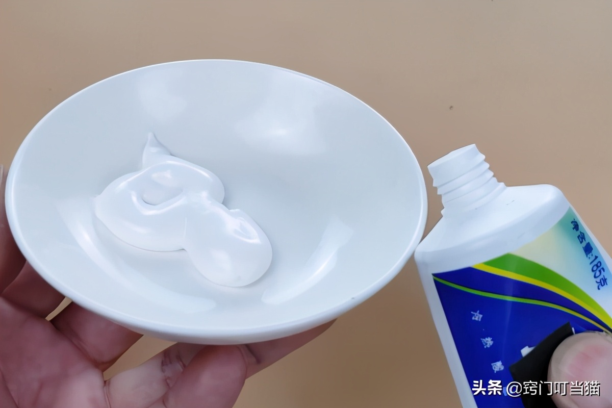 第一步:首先准备一个小容器,在容器里面挤入一段牙膏,牙膏有很强的去污增白作用,里面含有研磨剂,再挤入一些洗洁精,洗洁精也有很强的去油能力,鞋子上的污垢泥土都能轻松洗干净。