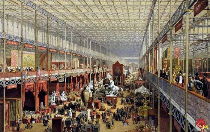 1851年5月1日,第一次世界博览会在英国召开。完成了工业革命的英国已经是当时世界一流强国,维多利亚女王发出外交邀请信函,有10个国家接受了邀请。维多利亚时代的建筑风格是笨重的,多为庞大的石头建筑。在这次世界博览会上,英国人一改往日风格,在著名的海德公园内建造以钢和玻璃为主要材料的水晶宫。