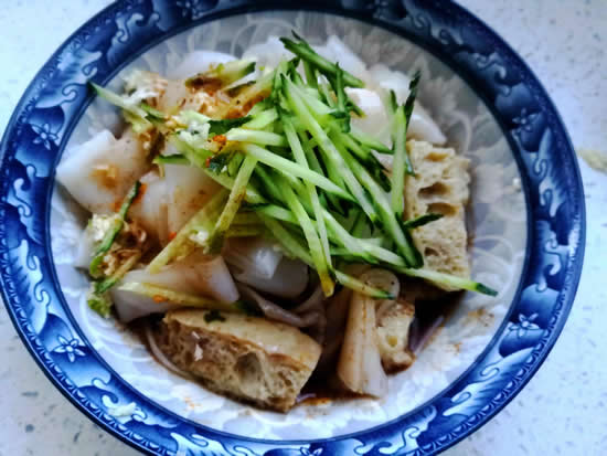 做蒸饺用不完的澄粉可以做凉皮,没有澄粉不用专门买来做凉皮,家里的各种食材买多了就容易忘,忘了就容易坏,坏了就得扔,扔了太浪费!